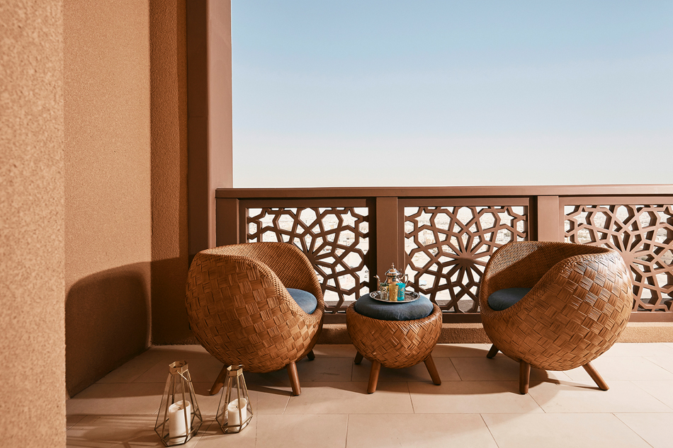The small furjat openings, which allow light and air to circulate, are translated in our designs into subtle plays of light and shadow and delicate visual rhythms. Geometric repetitions — found in shurfat battlements and engraved al-bab doors — are reinterpreted through surfaces, textiles, and woodwork, creating a visual narrative that blends order and craftsmanship.