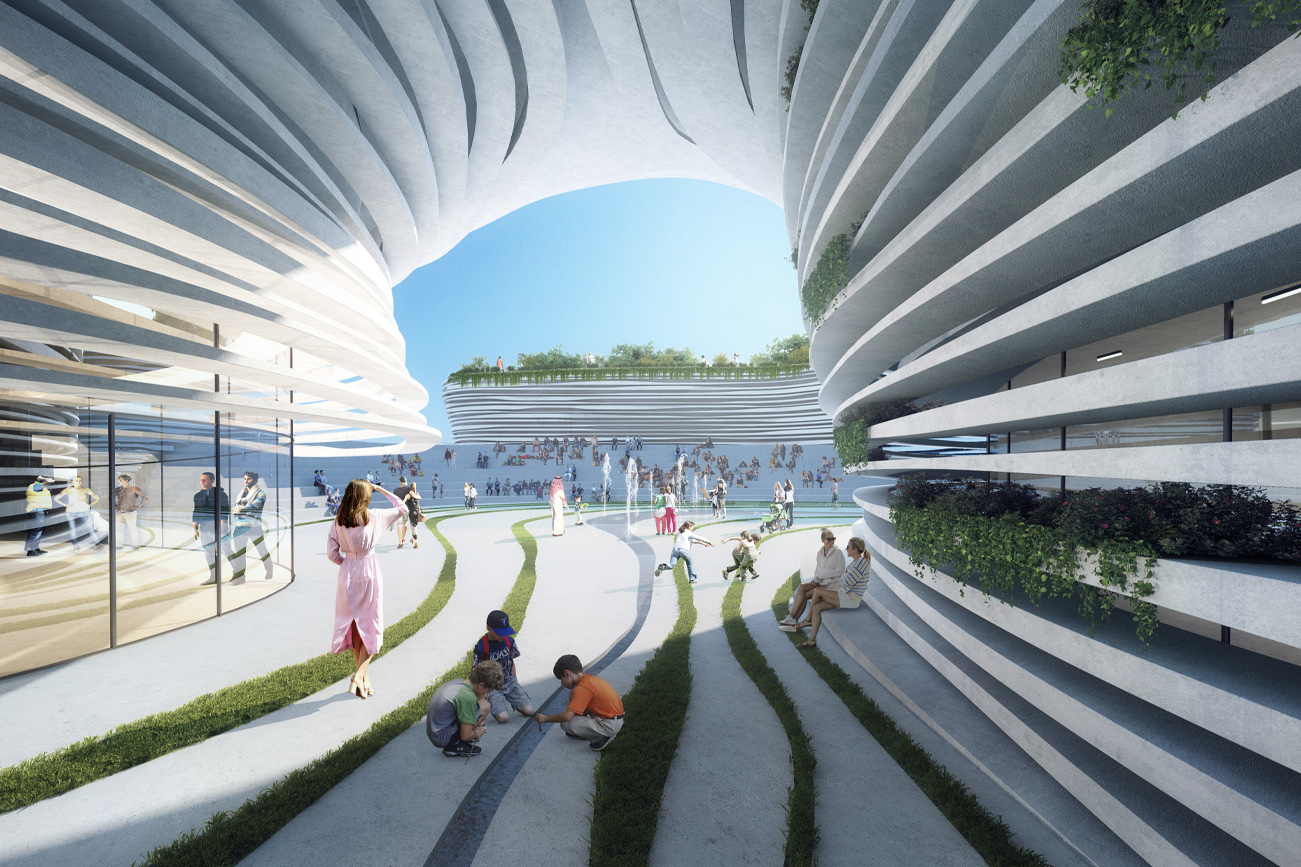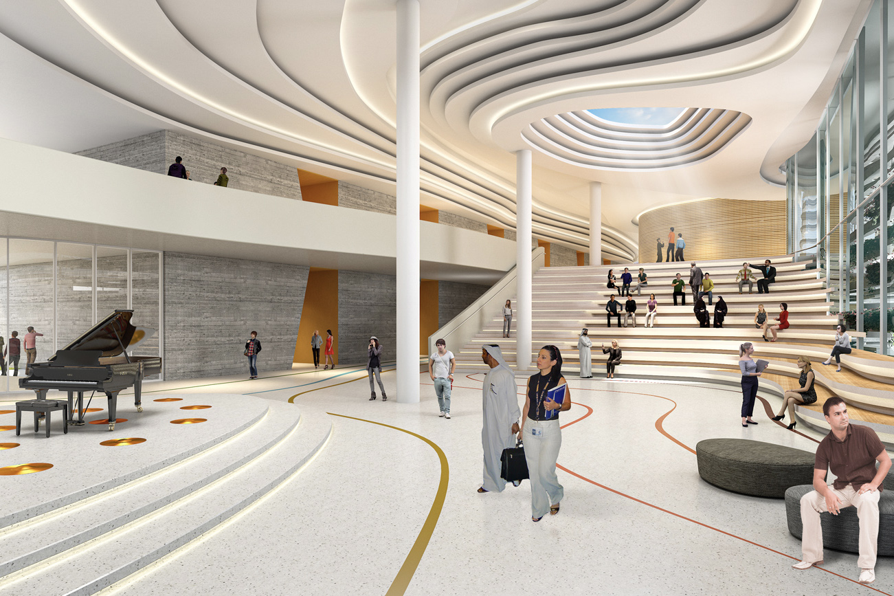 The architecture and interior design are inspired by the wind blowing in the project area. The wind, as an indispensable element for making music, inspires the shapes of the building both in its façade and in its internal communications, creating a sinuosity that allows an organic integration between the building and the user.