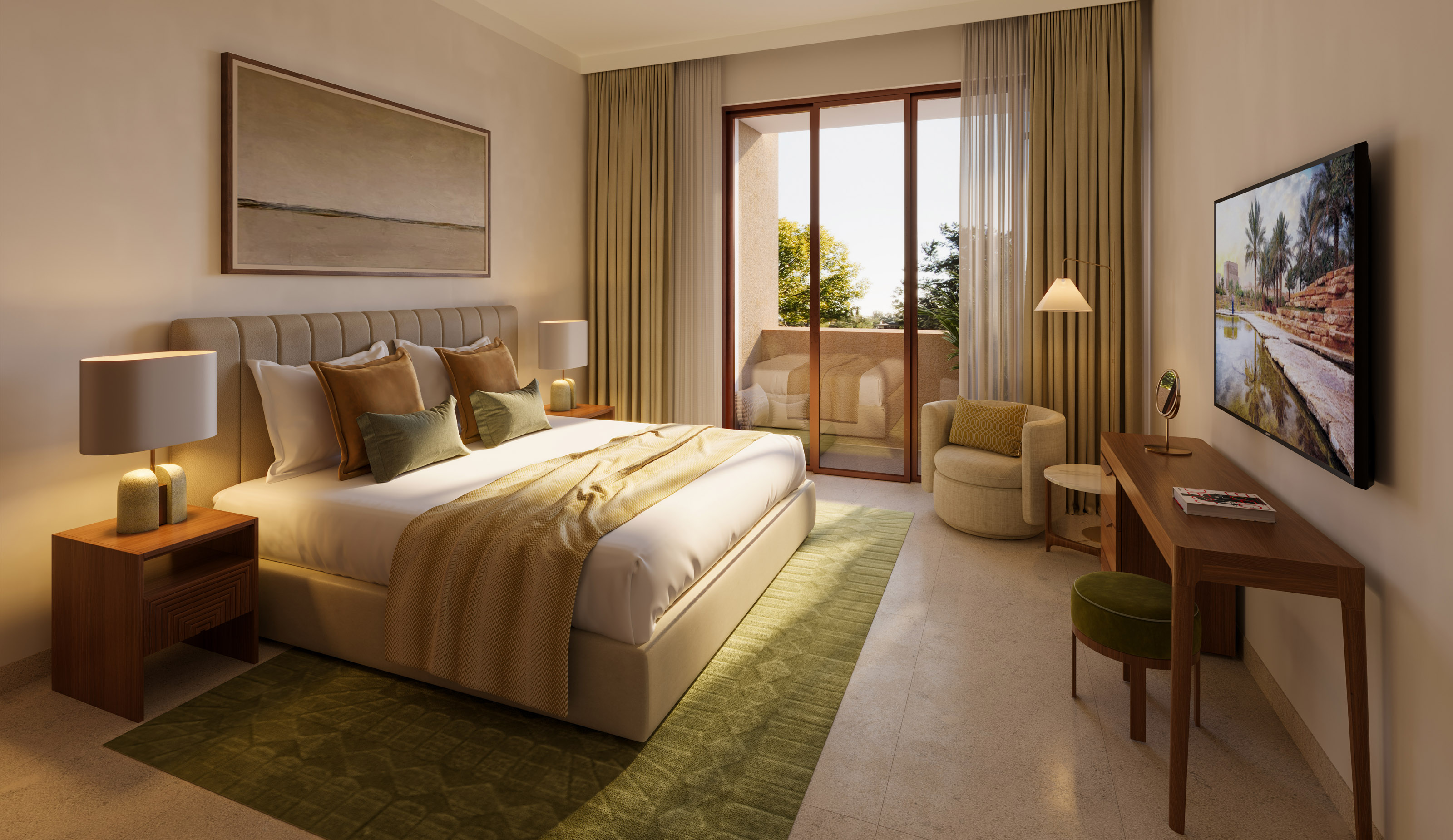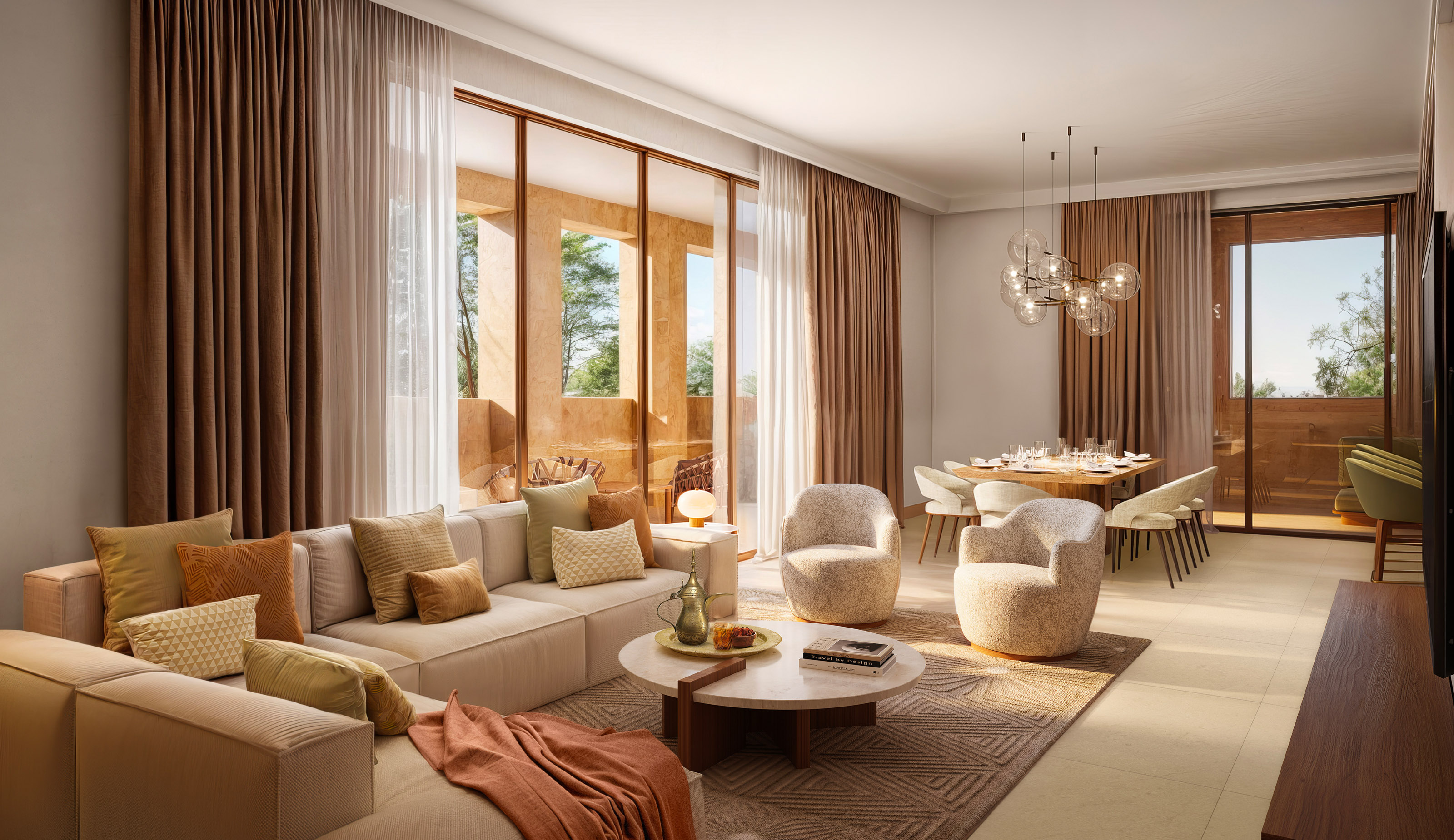The interior design takes inspiration from the rich cultural history of Saudi Arabia, encapsulating the essence of the unique Najdi style in a contemporary expression. The interiors will be envisioned as a celebration of the cultural and architectural legacy, with each tower reflecting a distinctive character while contributing to the unified identity of the entire complex.