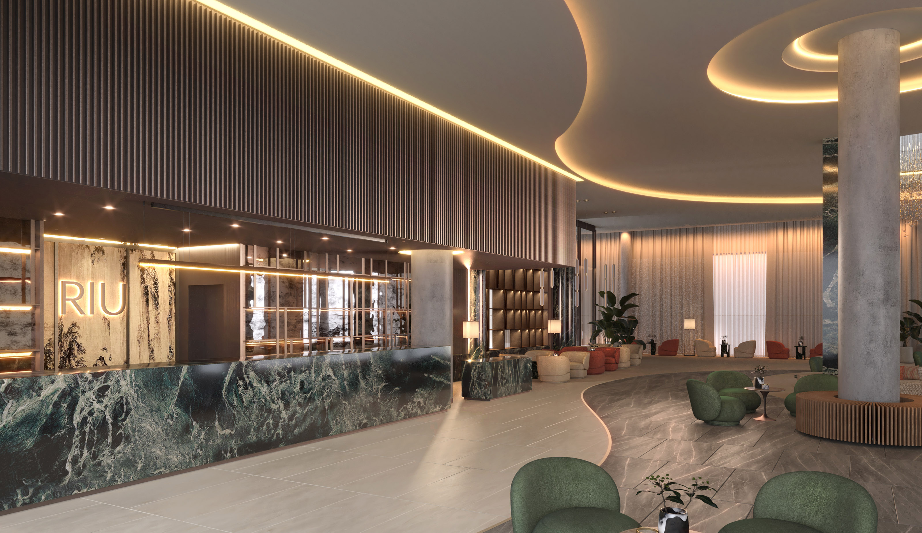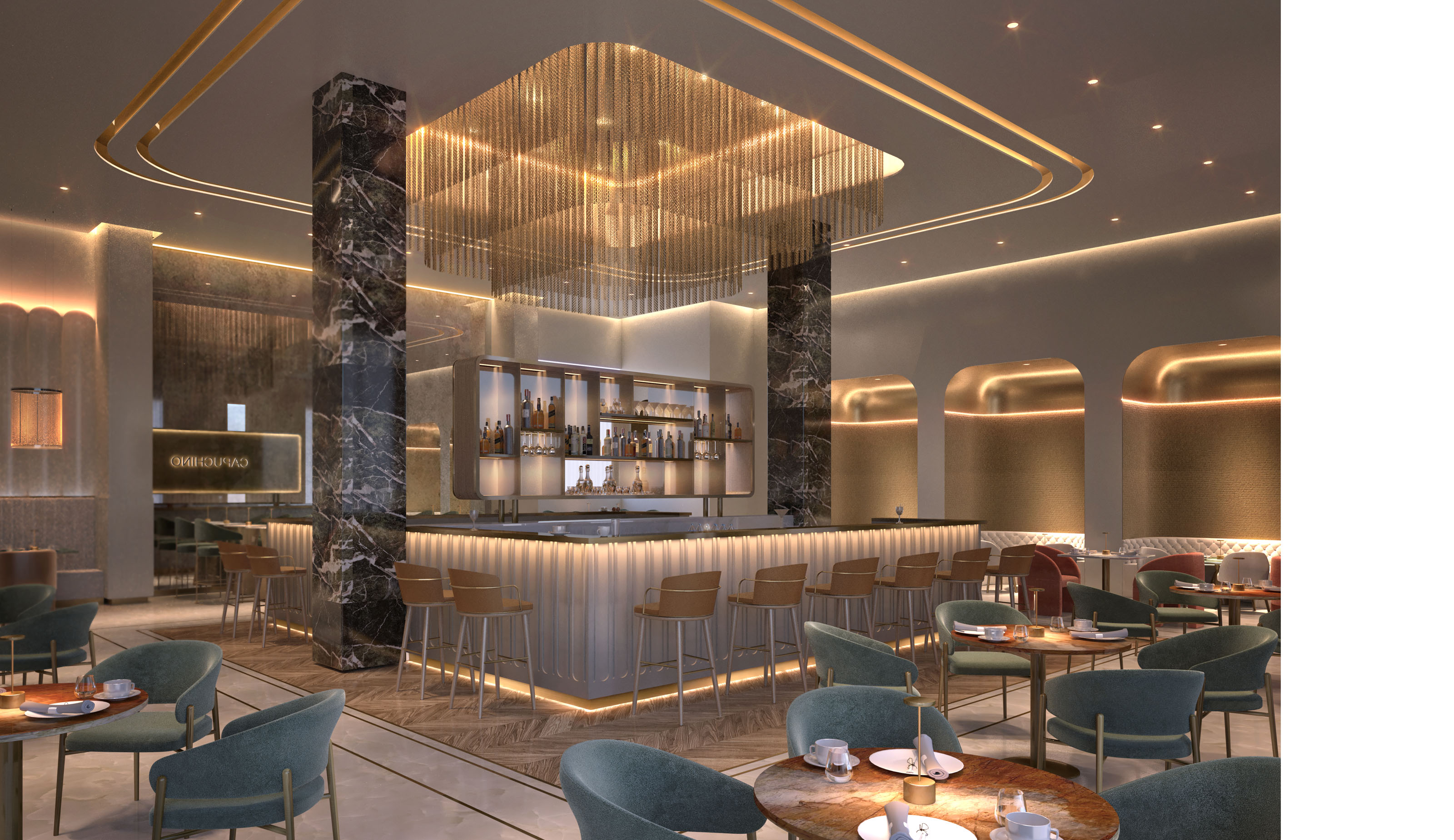 The central axis of the main idea is the contrast between Old and New Dubai. This concept aims to bring the cultural history from the old town of Dubai into the modern building, using neutral sand colors as a background, and adding accent hues of its vibrant colors, textures, tastes, smells, and vivacity.