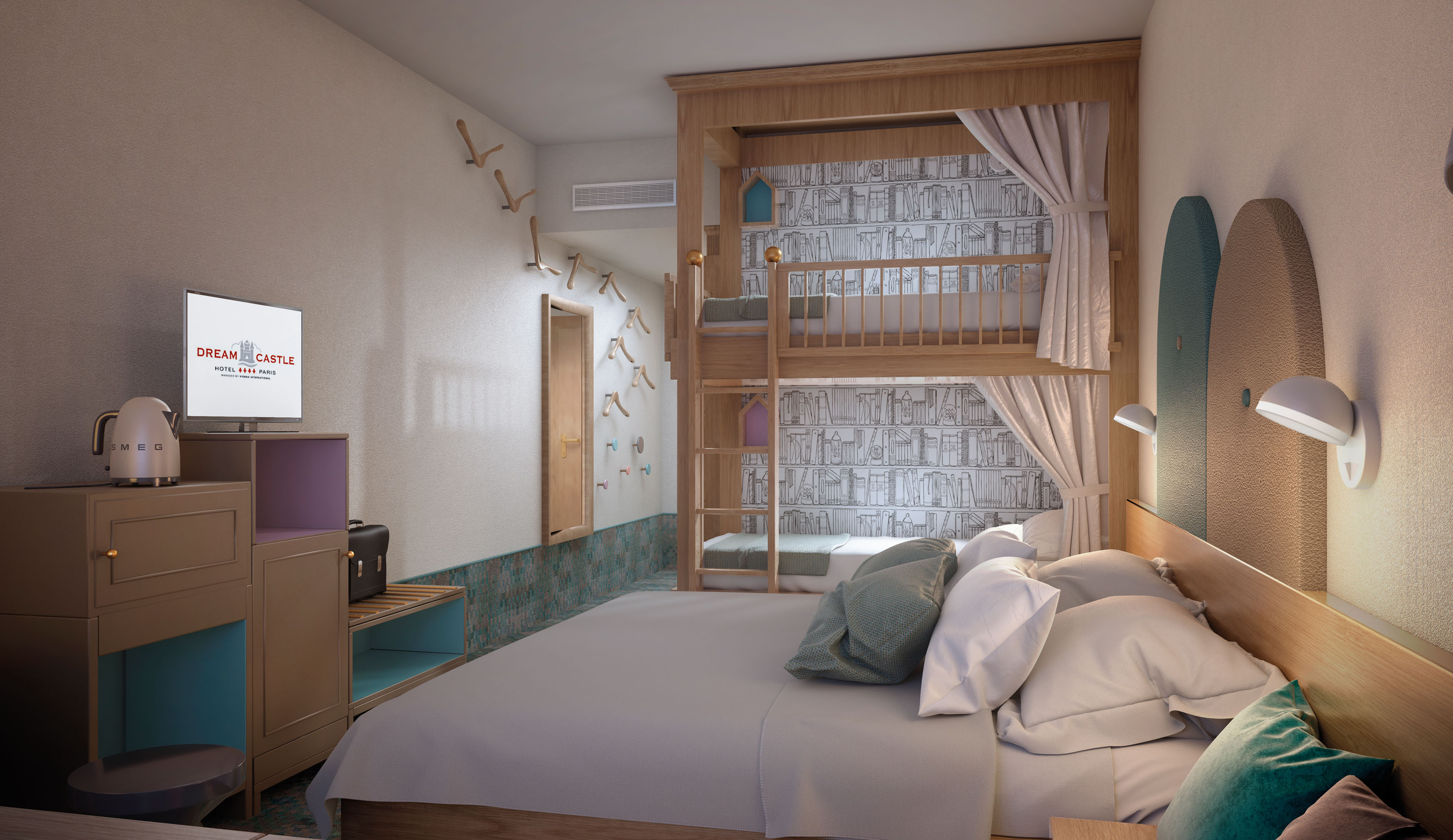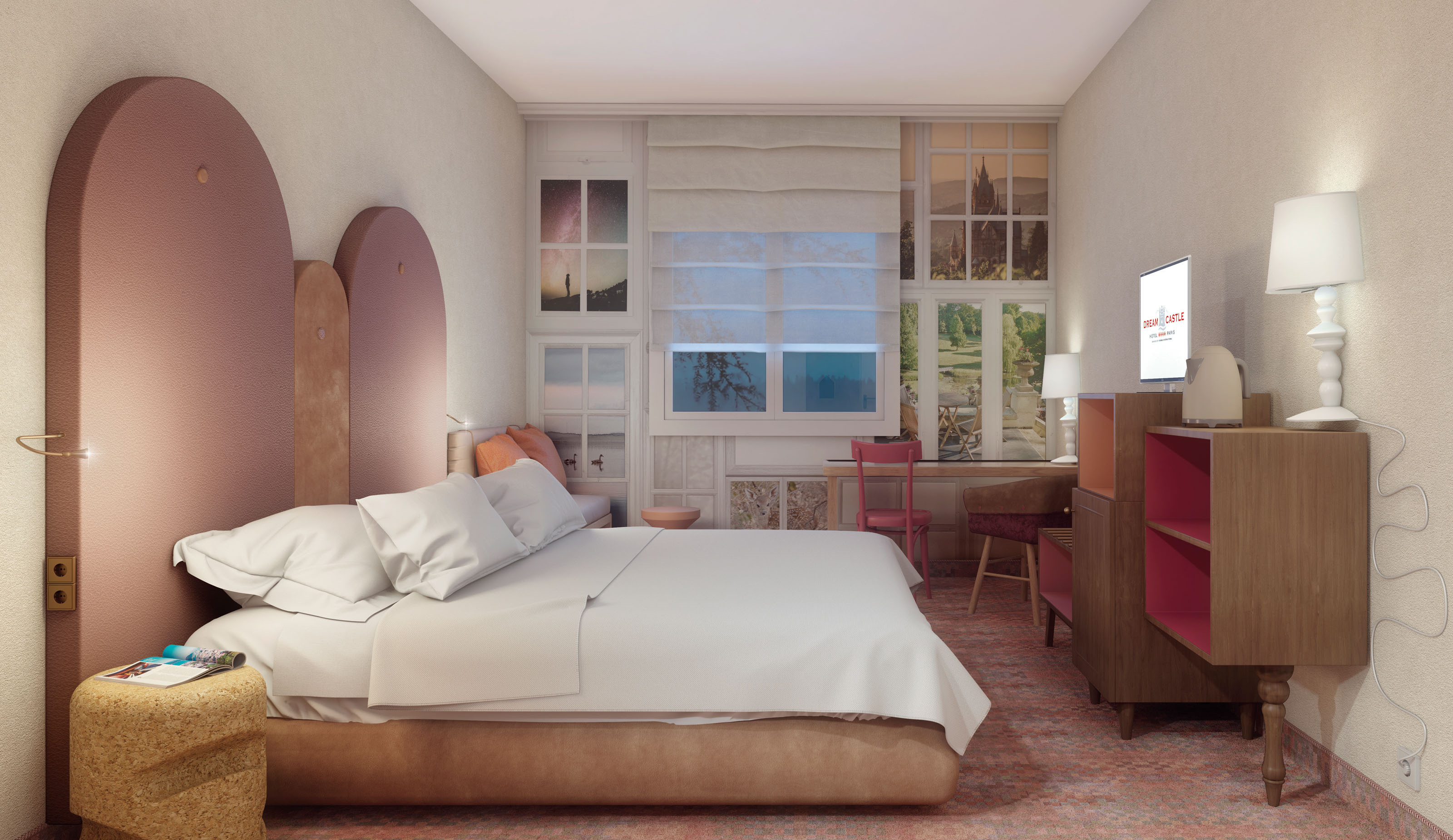 Located in Paris, the interior design concept for this hotel aims to create a magical atmosphere reminiscent of its name. The grand and ample space, with high ceilings and a wide floor plan, awakes an immediate impression of finding ourselves in a very special place. Mouldings in the ceilings frame the rooms, which, combined by a modern twist on the classical columns present throughout the common areas provide the feelings of a quirky, interesting castle.