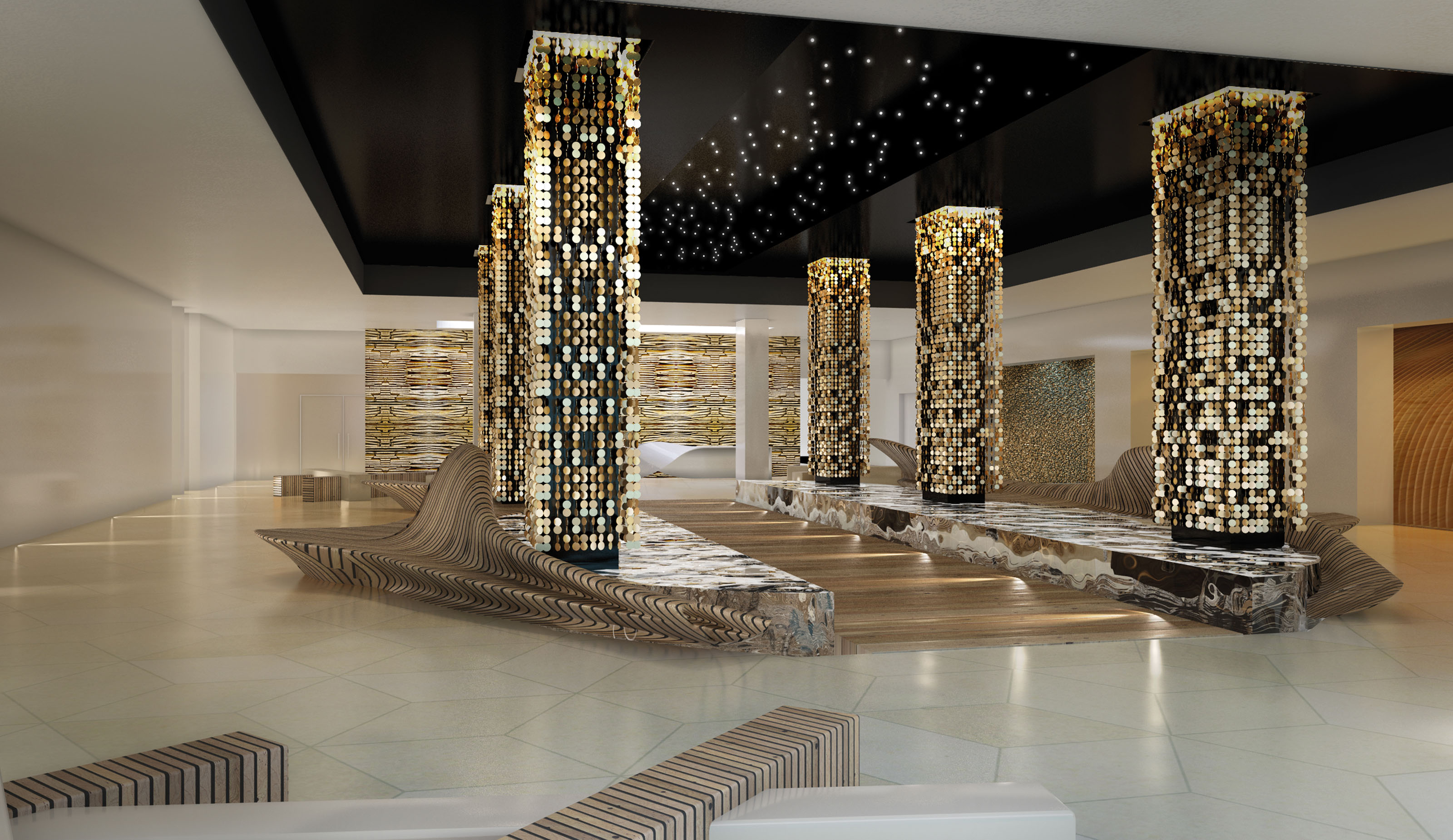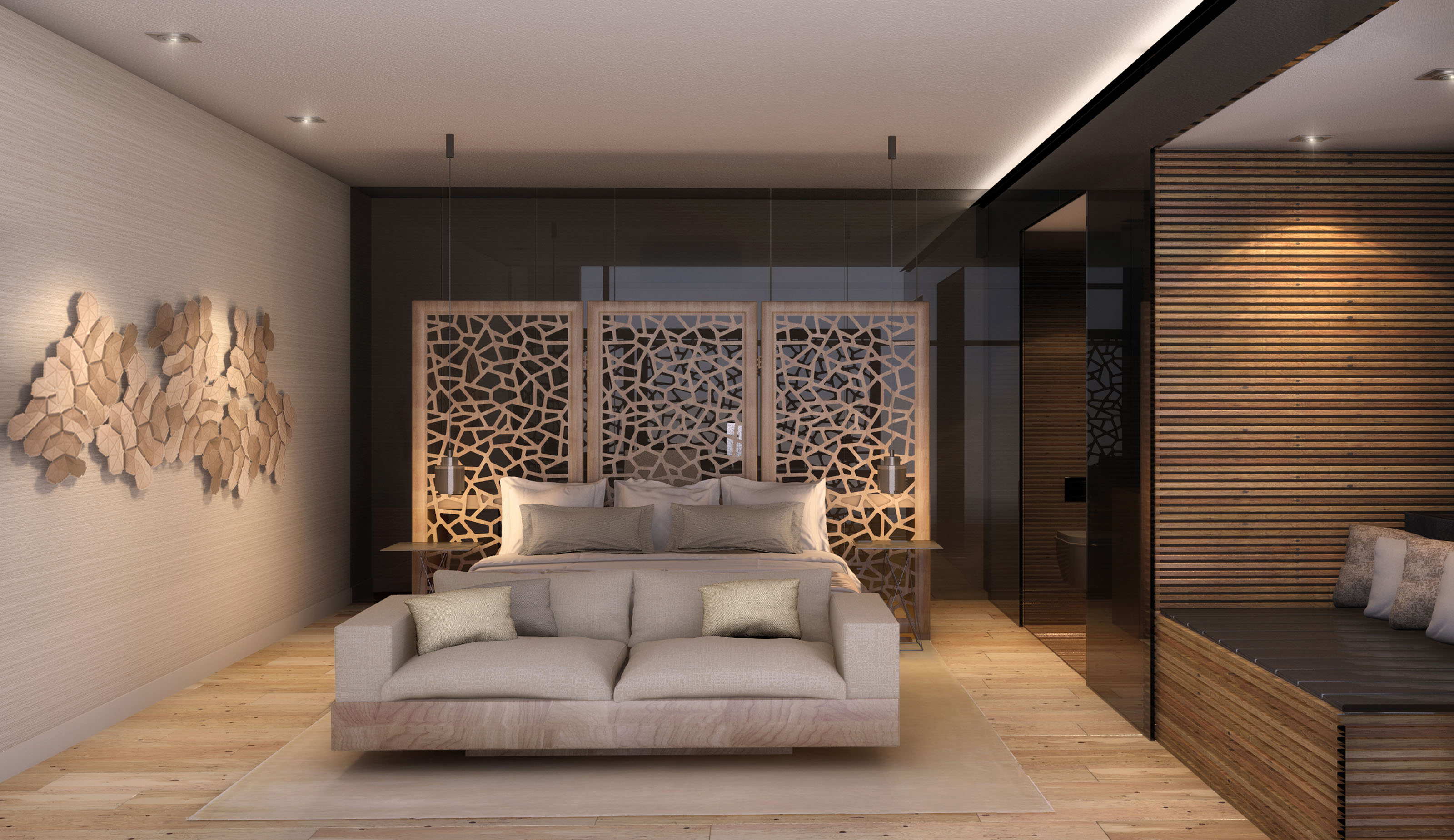 Jumeirah One is an affluent area in coastal Dubai which is very popular amongst expats. To cater their needs, the program also comprises a main lobby, restaurant, cafe lounge, business center, gym, suites, junior suites and guest rooms. Taking inspiration of its location, a strong concept employed in the interior design is based around wooden dowel structures, traditionally used as structural reinforcements in craft making. This creates a spectacular atmosphere throughout the spaces.