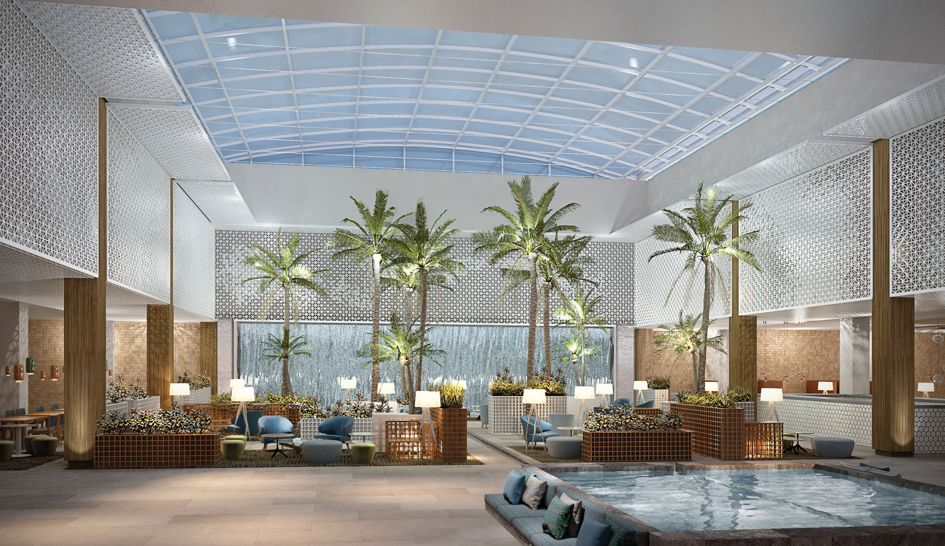 The city is well-known for its history of fishing and pearl gathering which goes back to the 11th century. This heritage is integrated in the concept design through several motifs like patterned carpets and pendant glass bowls containing local plants and lights. Sand-like and neutral hues provide a bright canvas to these references, highlighted by the natural wood panels which create an easy-going yet sophisticated ambiance throughout the hotel spaces. The common areas provide versatility and openness, ideal for guests who want to relax and also held work meetings in a more casual setting.