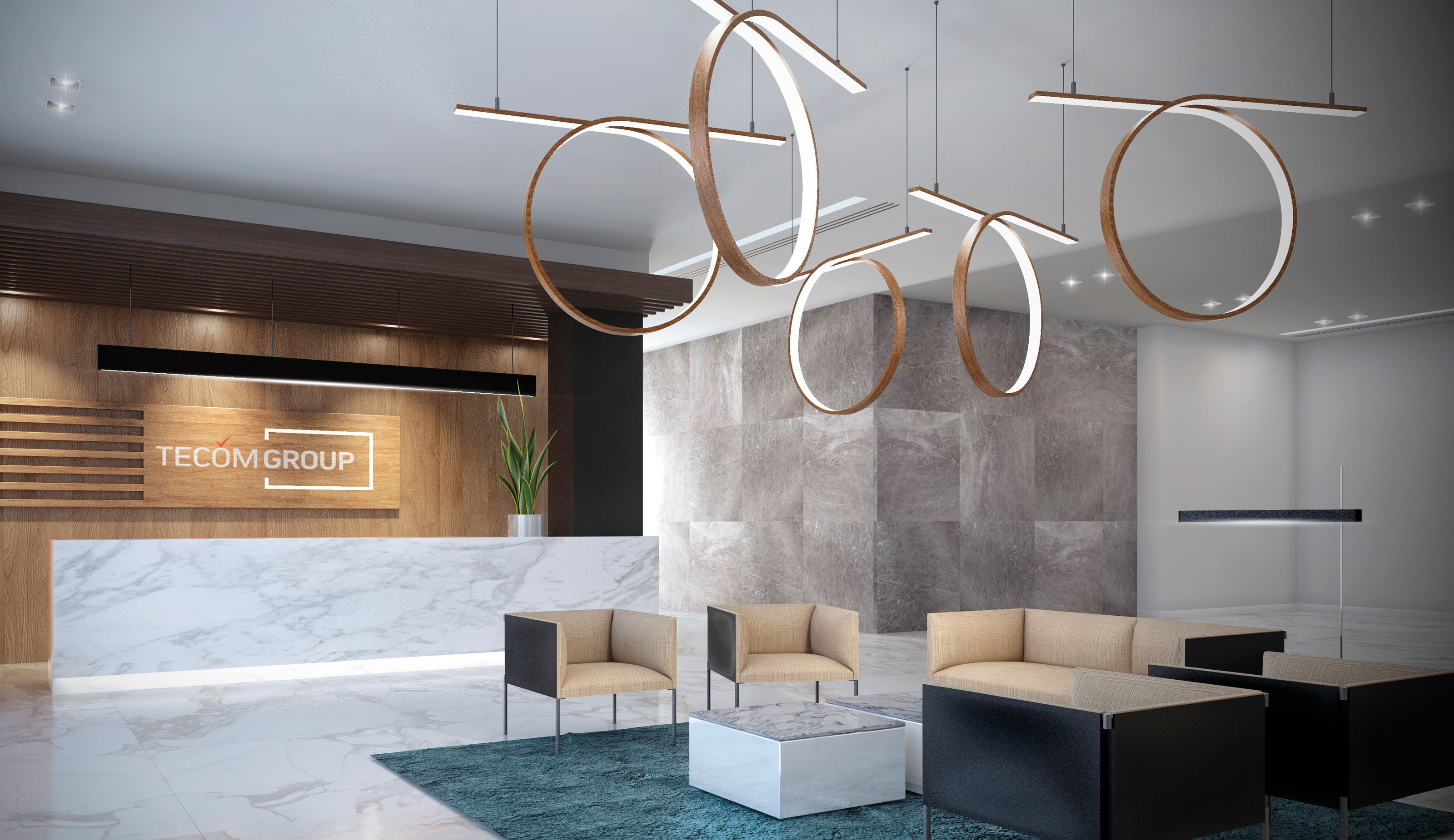 The interior design concept follows the client’s view of delivering work environments in the city of Dubai which foster innovative ecosystems. Focusing on the public areas of the Group’s office building, the proposed design achieves a visual coherence by integrating natural materials, colors and lighting in a modern and contemporary language which reflect the company’s ethos and corporate identity. The program includes the design of the reception area, access control and public toilets.