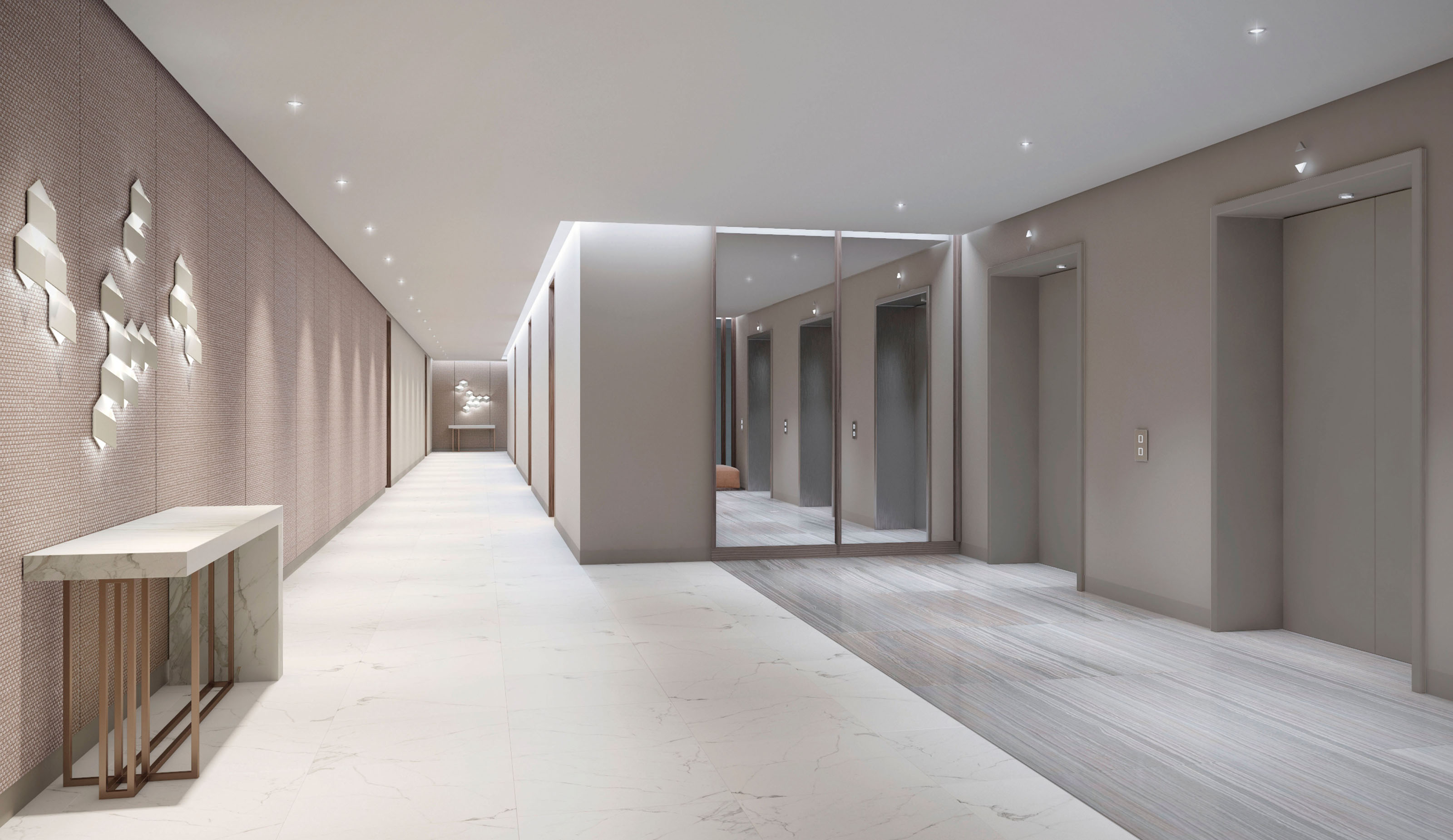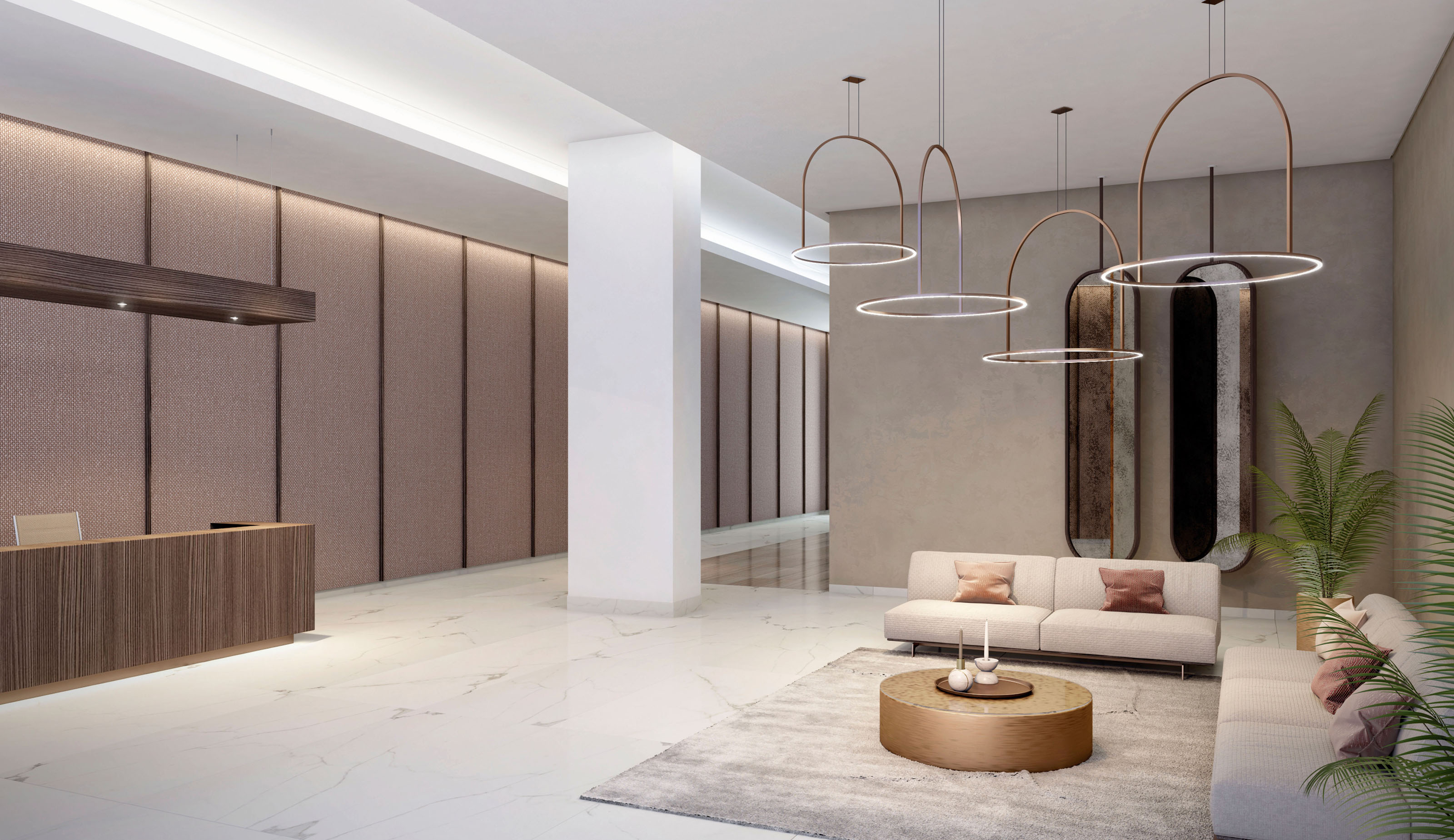 Located in the heart of Dubai Creek Island, an area with plenty of public and private recreational facilities, these two apartment towers host 156 upmarket residential units and amenities (swimming pool and children’s area) which connect with its surroundings through a clean and modern design aligned with the attributes of the harbour; light, air, space and greenery. To match the modern architecture, the interiors strive to achieve a serene simplicity through its color palette, tasteful materials, green design and a unique spatial concept.