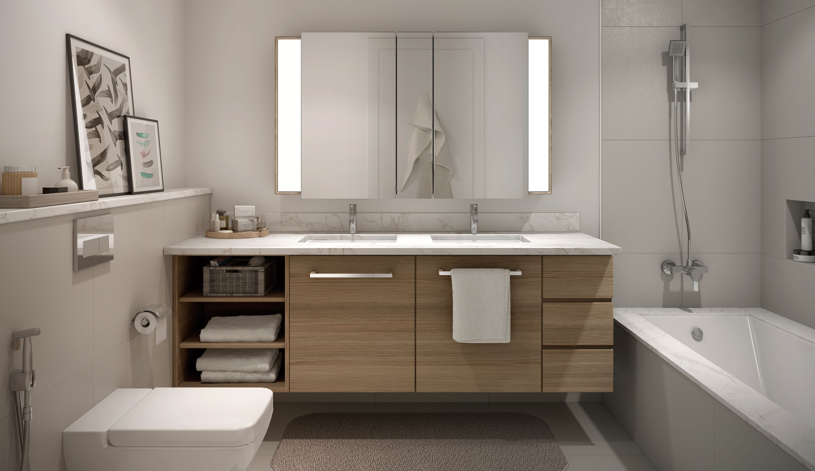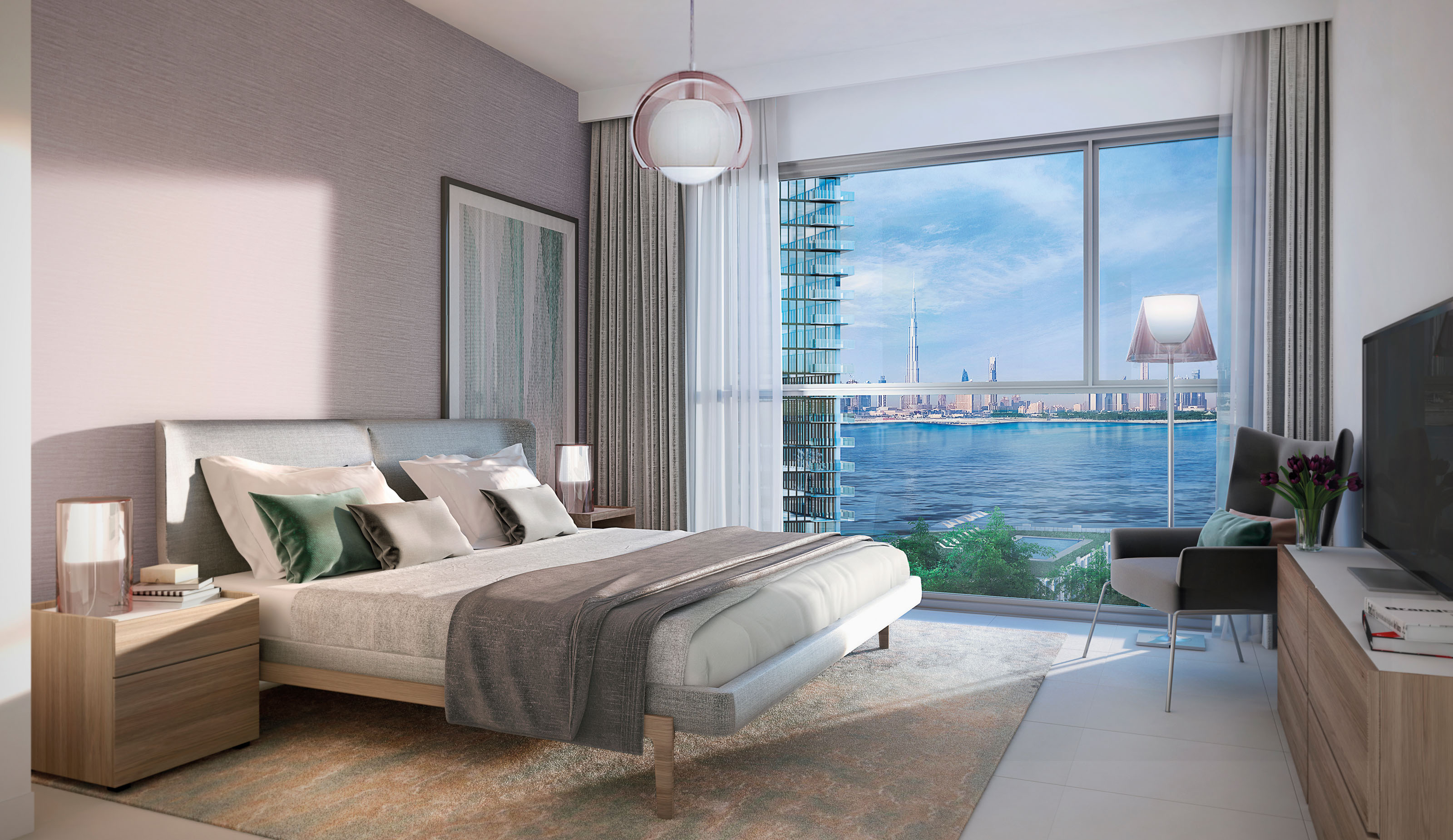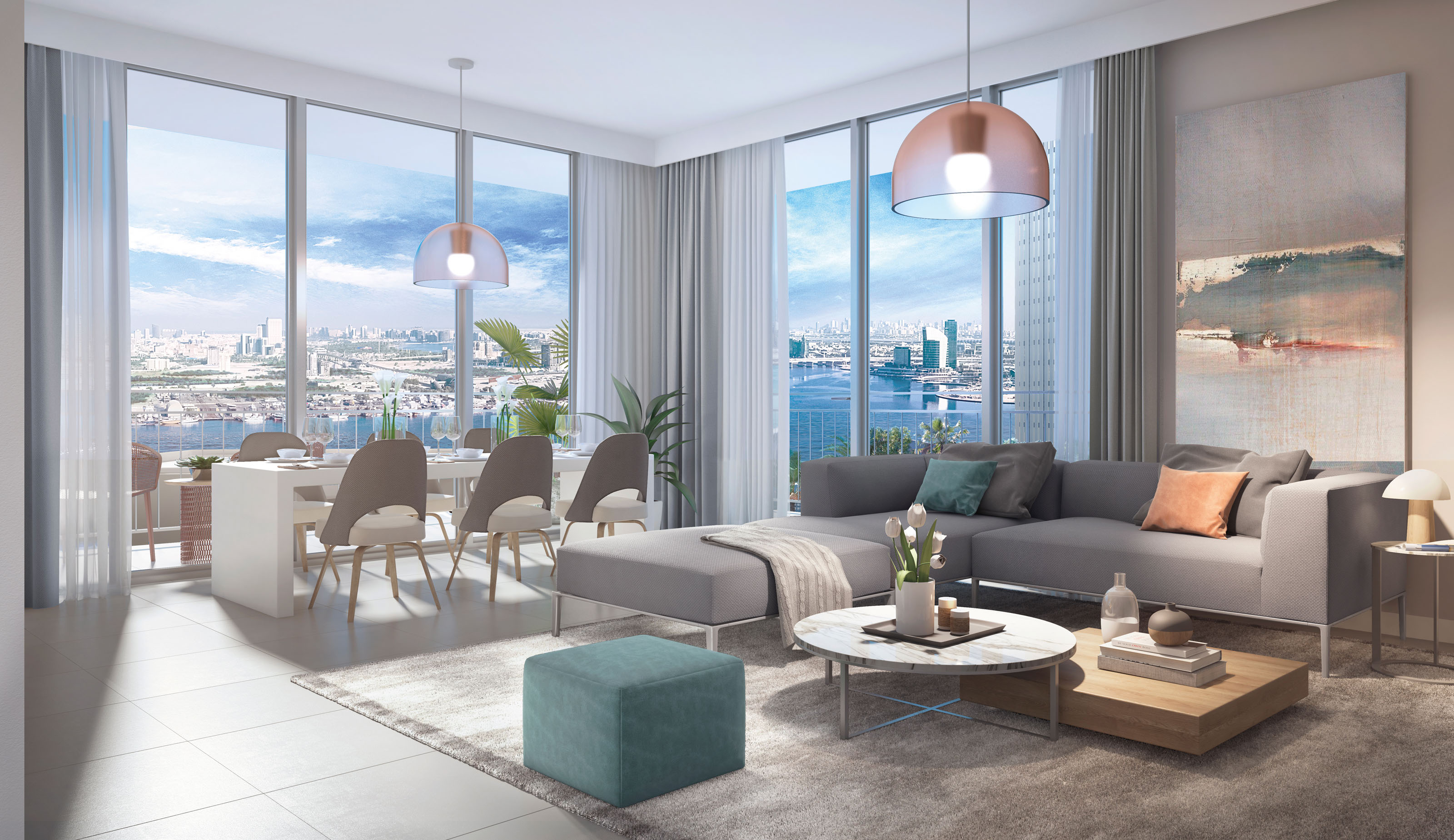 Boundaries between indoor and outdoor living disappear to create a relaxed atmosphere. Stunning floor-to-ceiling windows frame the wonderful views across the creek, downtown Dubai and the Ras Al Khor Wildlife Sanctuary as well as filling the apartments with abundant natural light. Every detail and feature has been carefully considered, from the sleek fittings in the kitchen to the contemporary fixtures in the bathrooms. All the design elements offer a superlative standard of living and a distinguished character to the apartments.