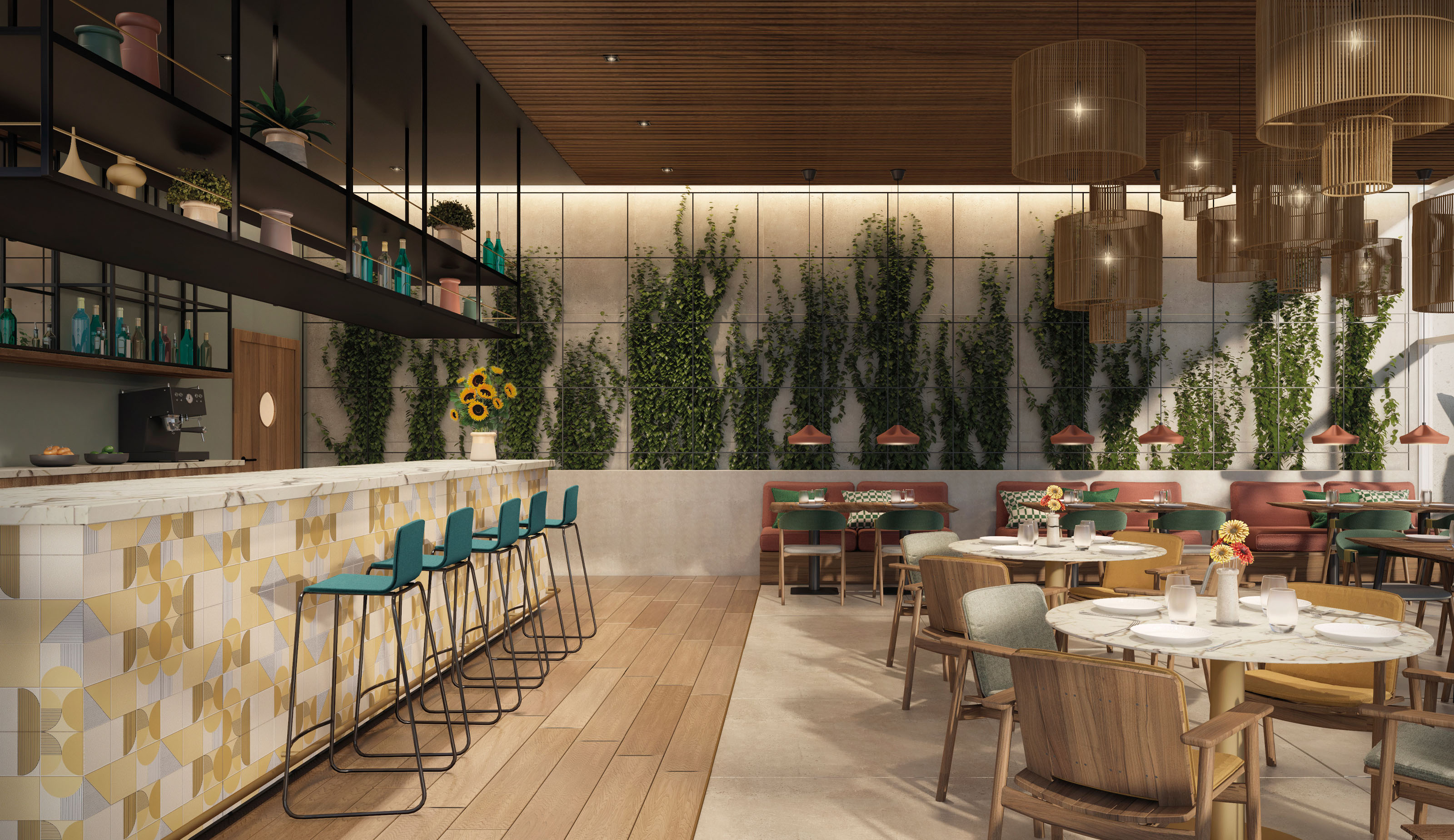 For the bedrooms zone it is proposed the use of natural materials for a calm and relaxing atmosphere, using natural wallpapers with colors that refer to the maritime landscape and joinery in natural darker wood. For the bathrooms, light color finishes gain a contrast with colourful tiles.In Some typologies receive a much cleaner and brighter color palette with touches of sea-side and natural elements, where fabrics and weaved carpets bring nature to the inside.