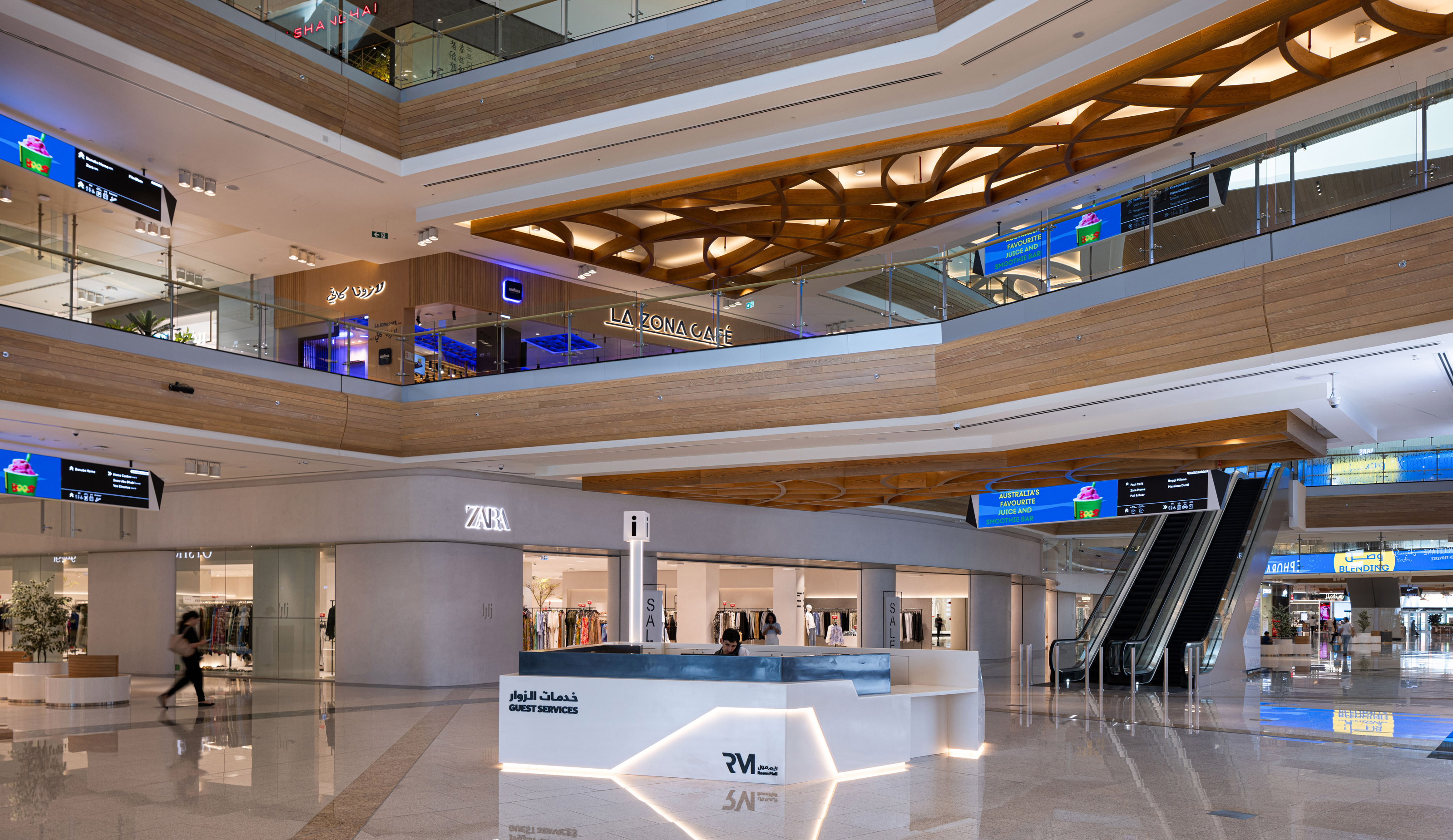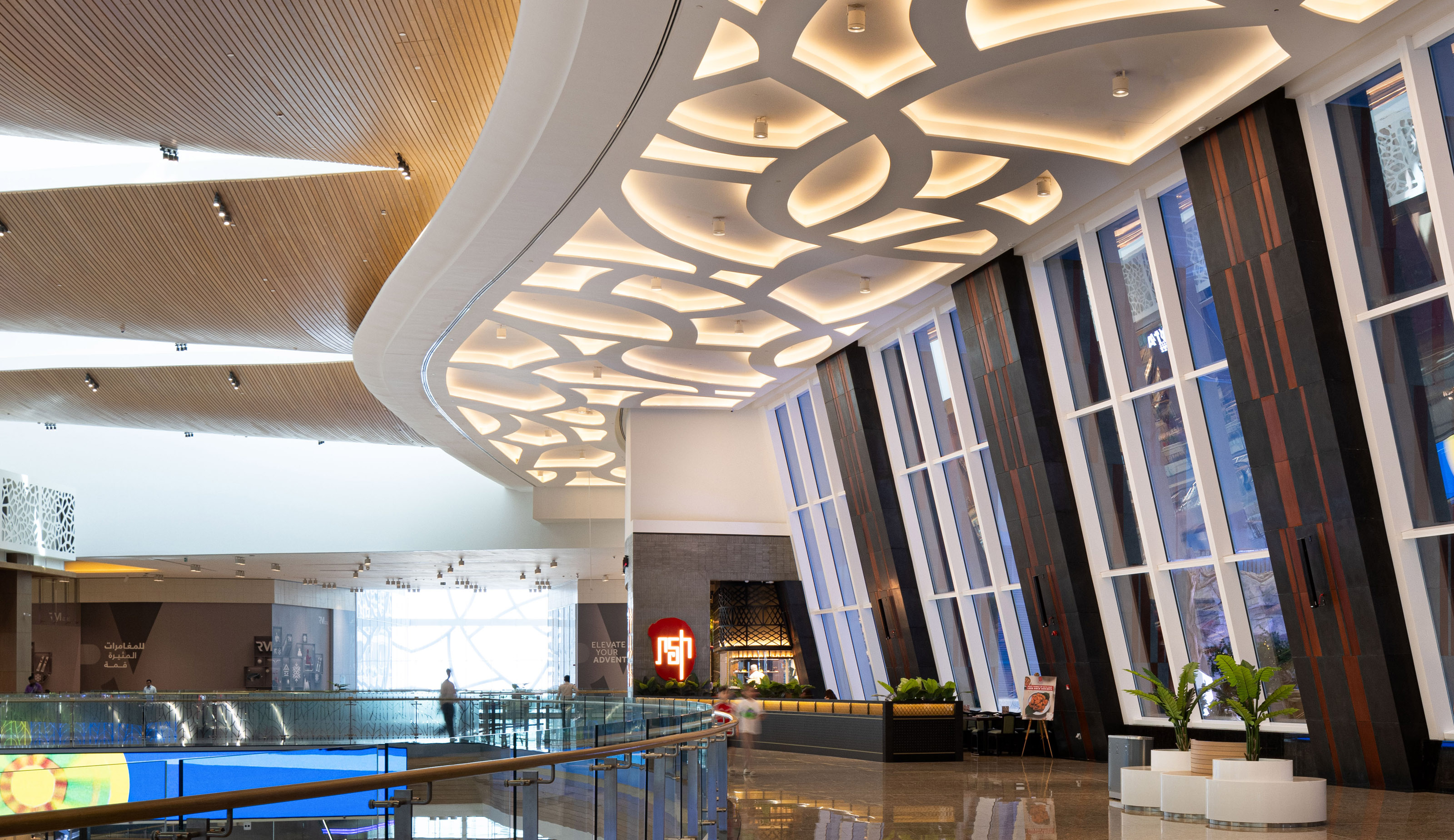 Located on Reem Island with fantastic views to the marina, Reem Mall is the shopping, entertainment and food destination for the high-end residential developments of Hazaa bin Zayed Street and Al Reem Island. The interior design concept draws inspiration from elements of the local landscape like salt and the salt mangrove, reflected in materials like glass and metal, and the patterns and organic shapes which characterize this salt-tolerant shrub. The program of the mall includes the interior design development for all public spaces inside the mall: circulation spaces, food courts, prayer room, public toilets and administration offices.
