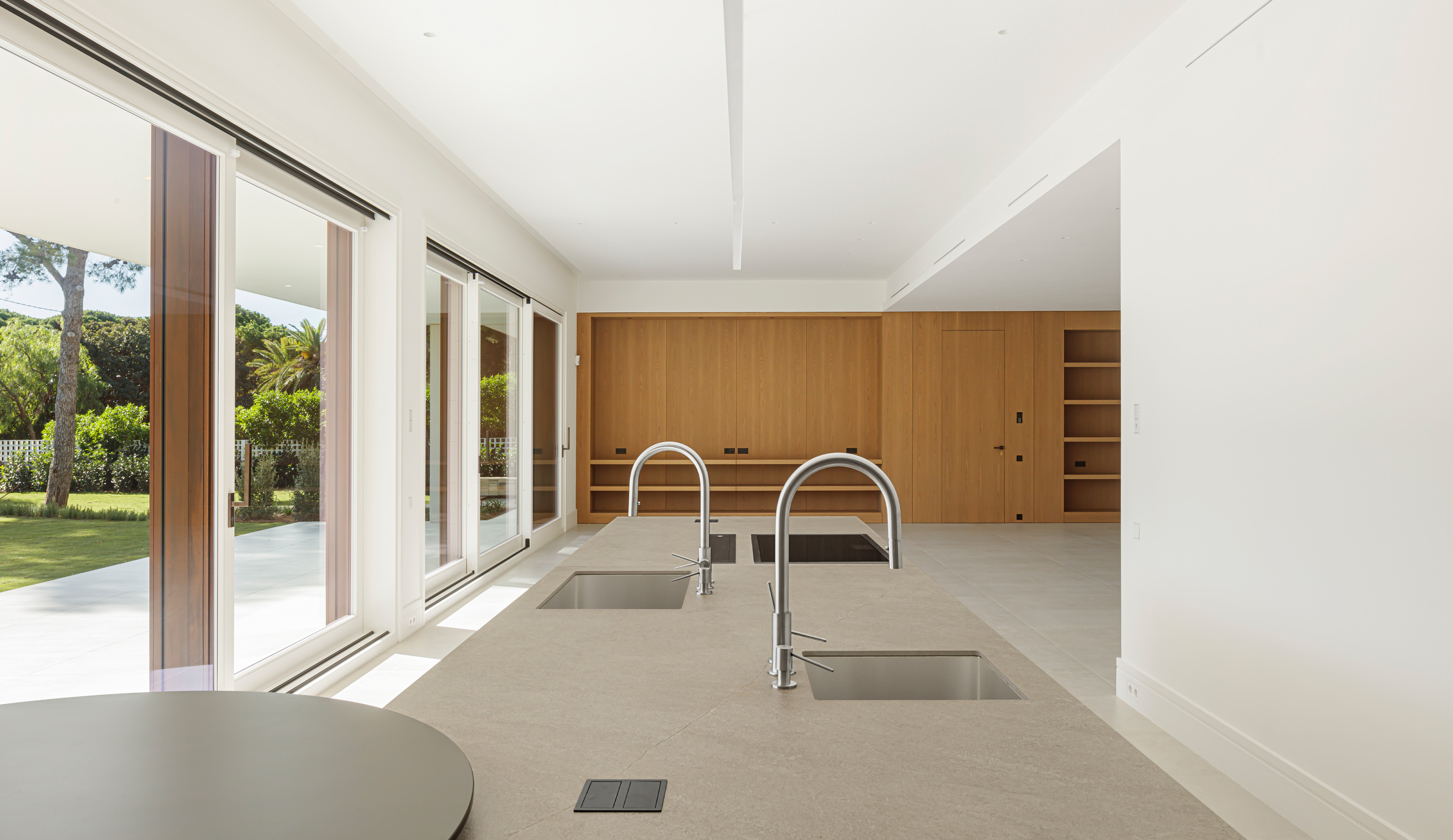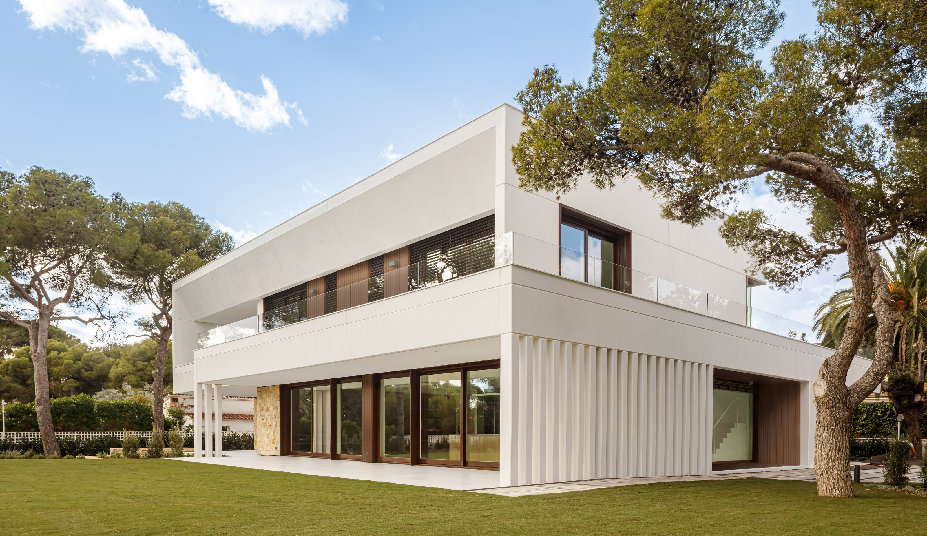 Located a few meters from the seafront, in the town of Sitges, in the exceptional environment of the Garraf coast, stands this contemporary single-family home of 729.29m2 built structured on ground floor, first floor, and a walkable roof offering views of the Mediterranean. The 2449m2 plot surrounding the house is enveloped in its own landscape, enjoying the tranquility of the Vinyet neighborhood where it is located.