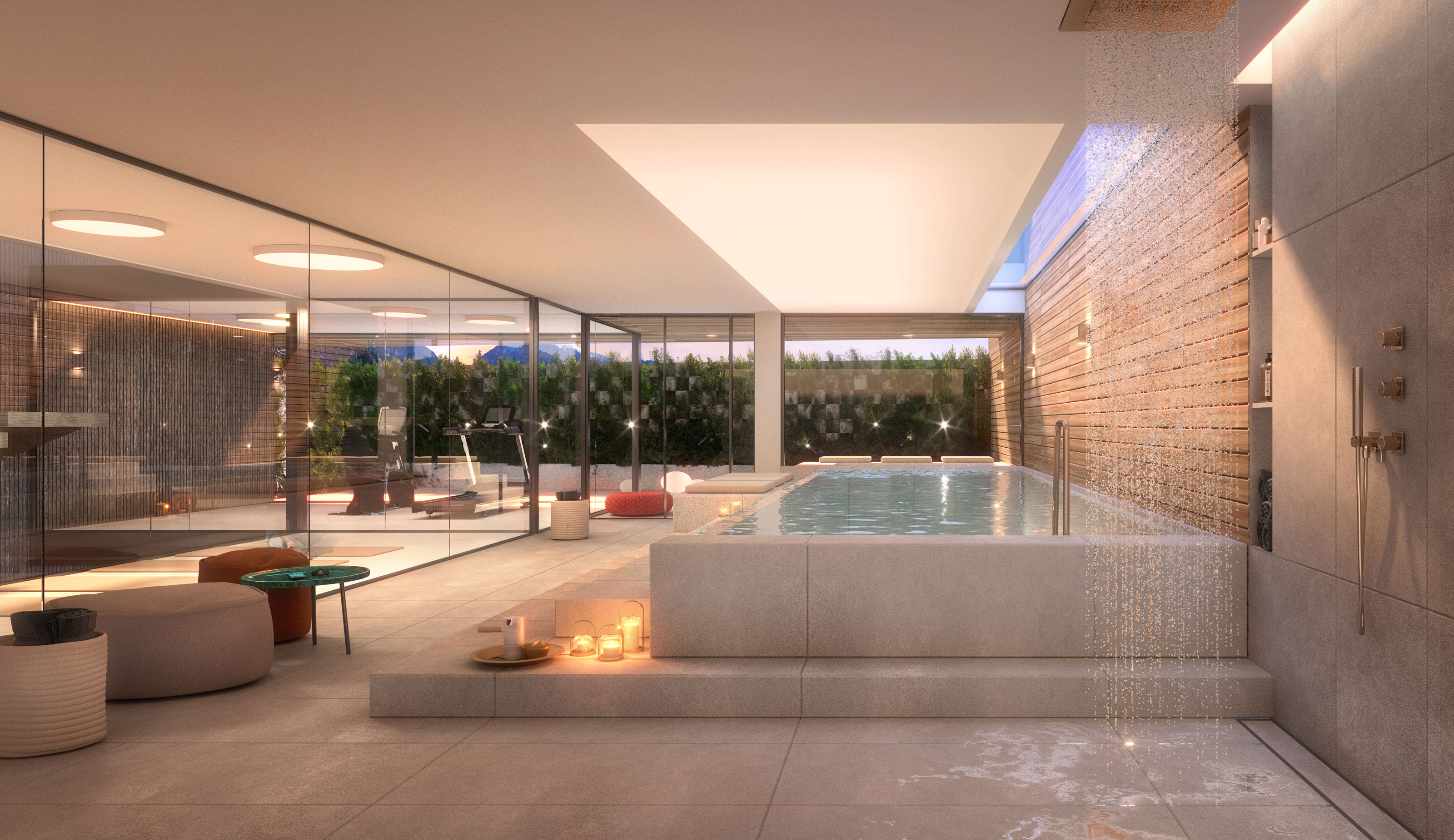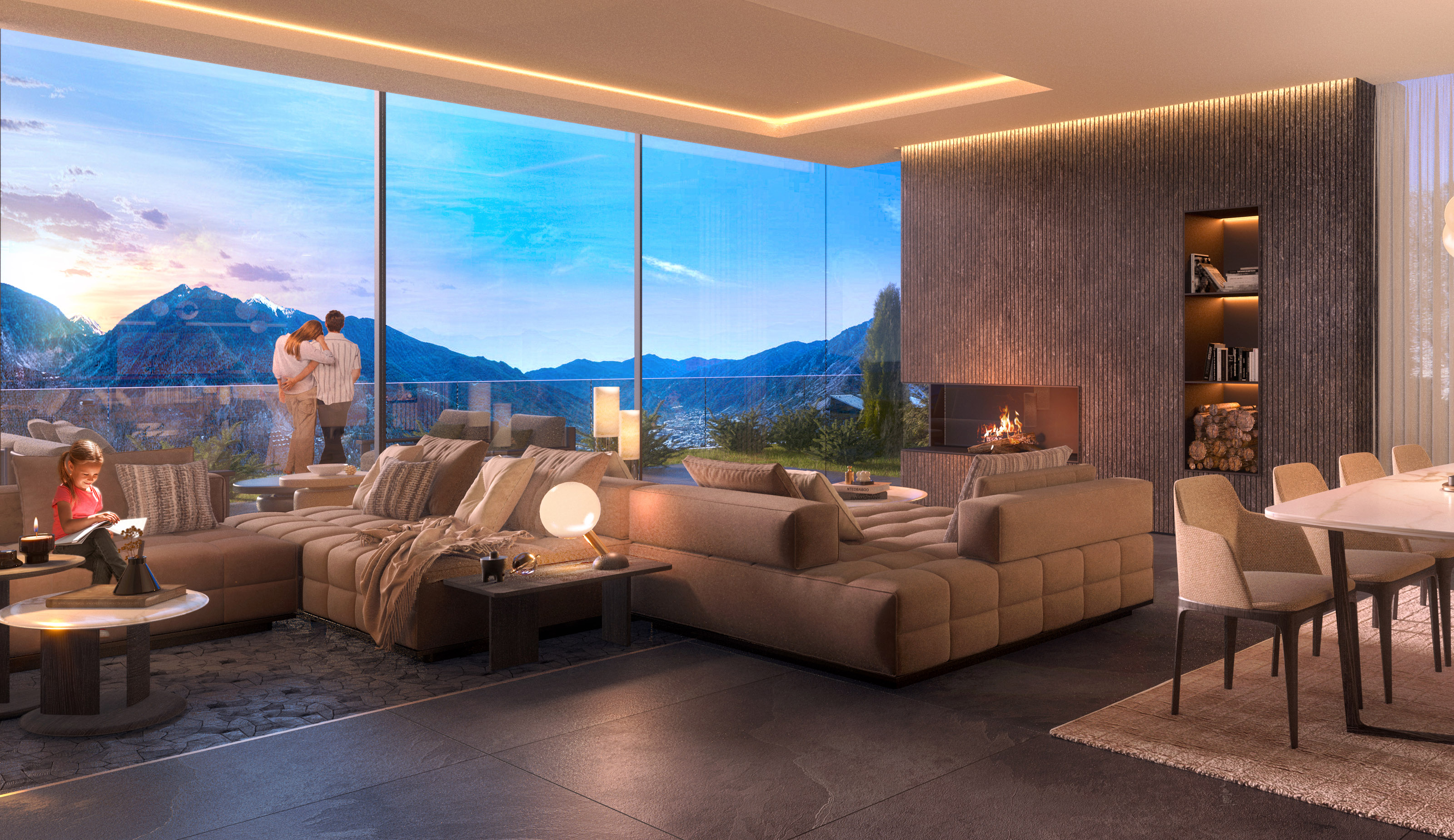 Residential project consisting of five identical residential blocks, each with varying levels of height that allow for the appreciation of panoramic views offered by the surroundings, spanning from the mountains to the city. The surrounding landscape is characterized by curved and organic forms. In contrast, the architectural design breaks away from these curves by presenting straight lines, thus becoming the focal point of the composition.